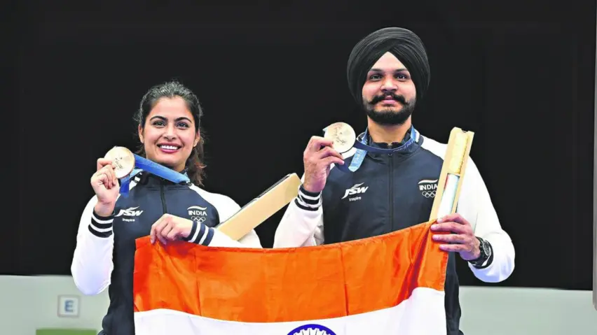 In a groundbreaking achievement for Indian sports, shooters Manu Bhaker and Sarabjot Singh have clinched the nation’s first-ever medal in a shooting team event at the Olympic Games.